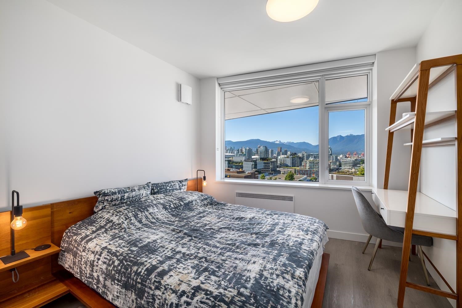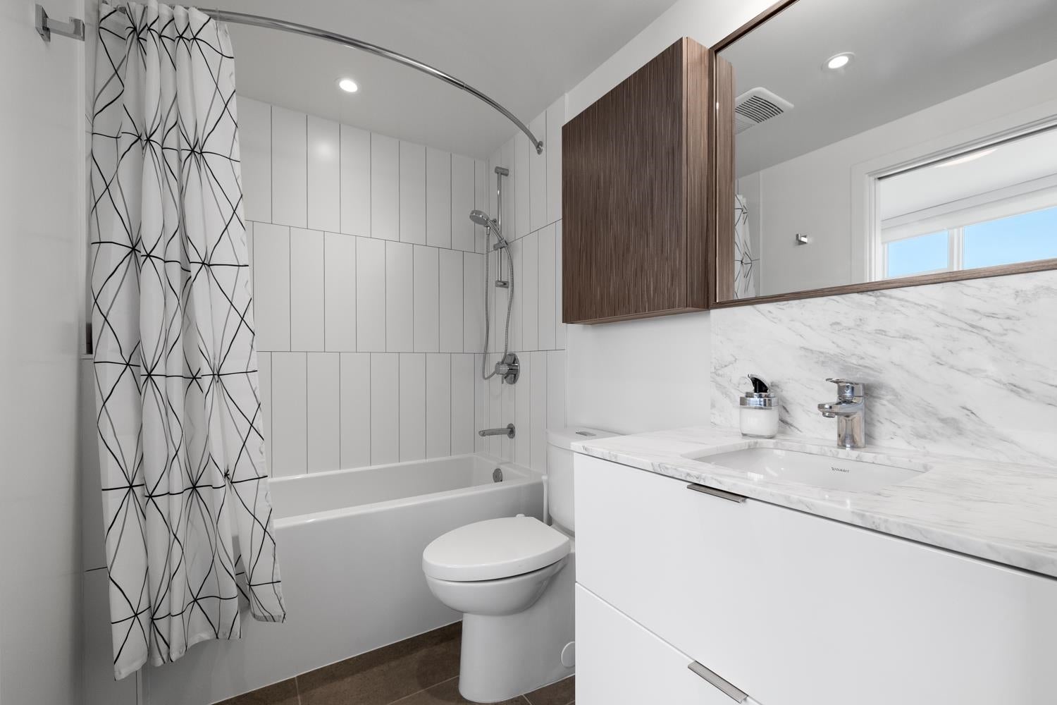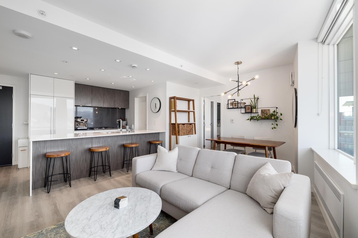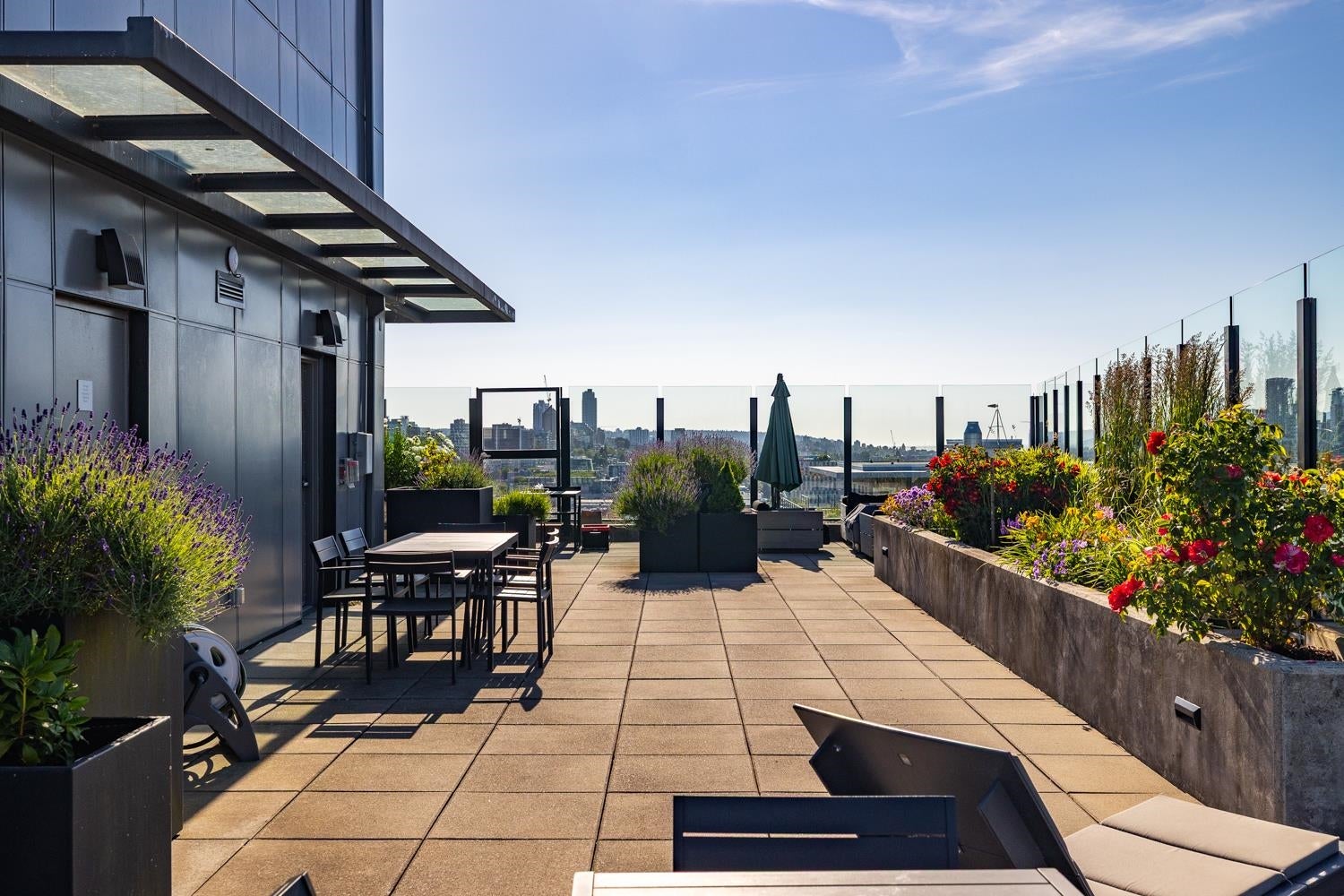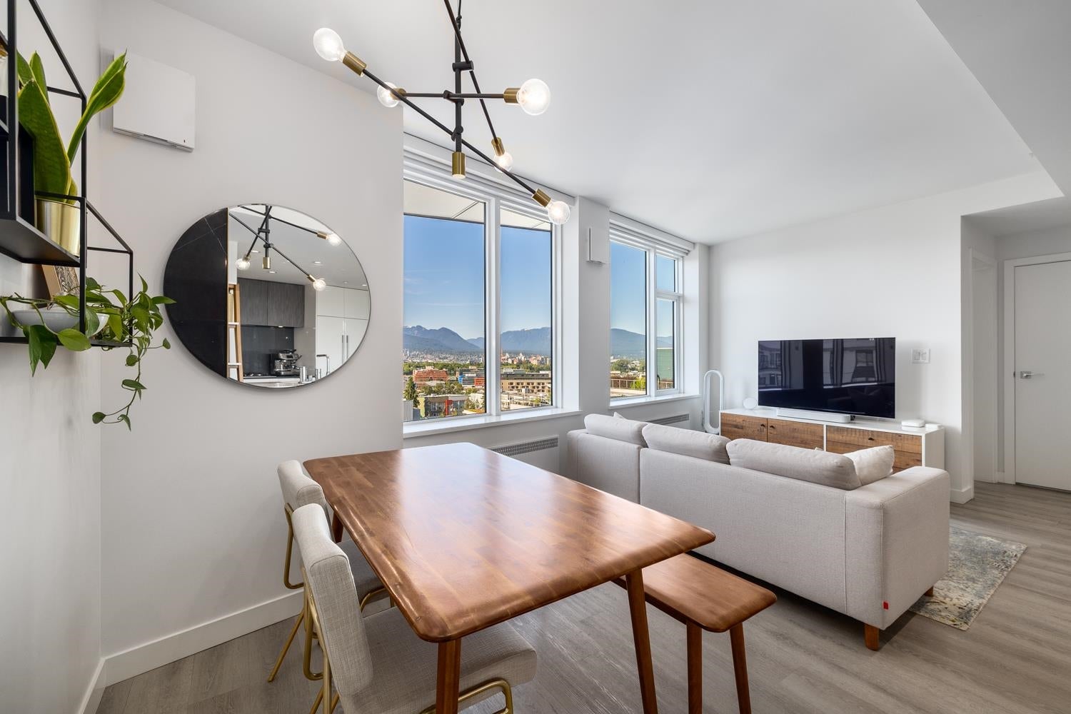 Spectacular views of the North Shore Mountains & City skyline from this beautiful Sub-Penthouse in vibrant Mt. Pleasant! Welcome to Ellsworth, a LEED certified concrete building just steps to Main St, this bright north-facing, open-concept 2 bedroom 2 bathroom+Flex/Pantry home with no wasted space boasts high-end finishings, a kitchen equipped with gas range & integrated Fisher Paykel appliances complimented by quartz countertops. Energy efficient hydronic heating & cooling system plus a Parking Stall & Bike Locker included in this pet & rental-friendly building. BONUS: Private 112 sq.ft. Storage Room. Impressive amenities include a common 3,500 sq.ft. Rooftop terrace with BBQs & fire table, concierge & lounge with pool table & kitchen.