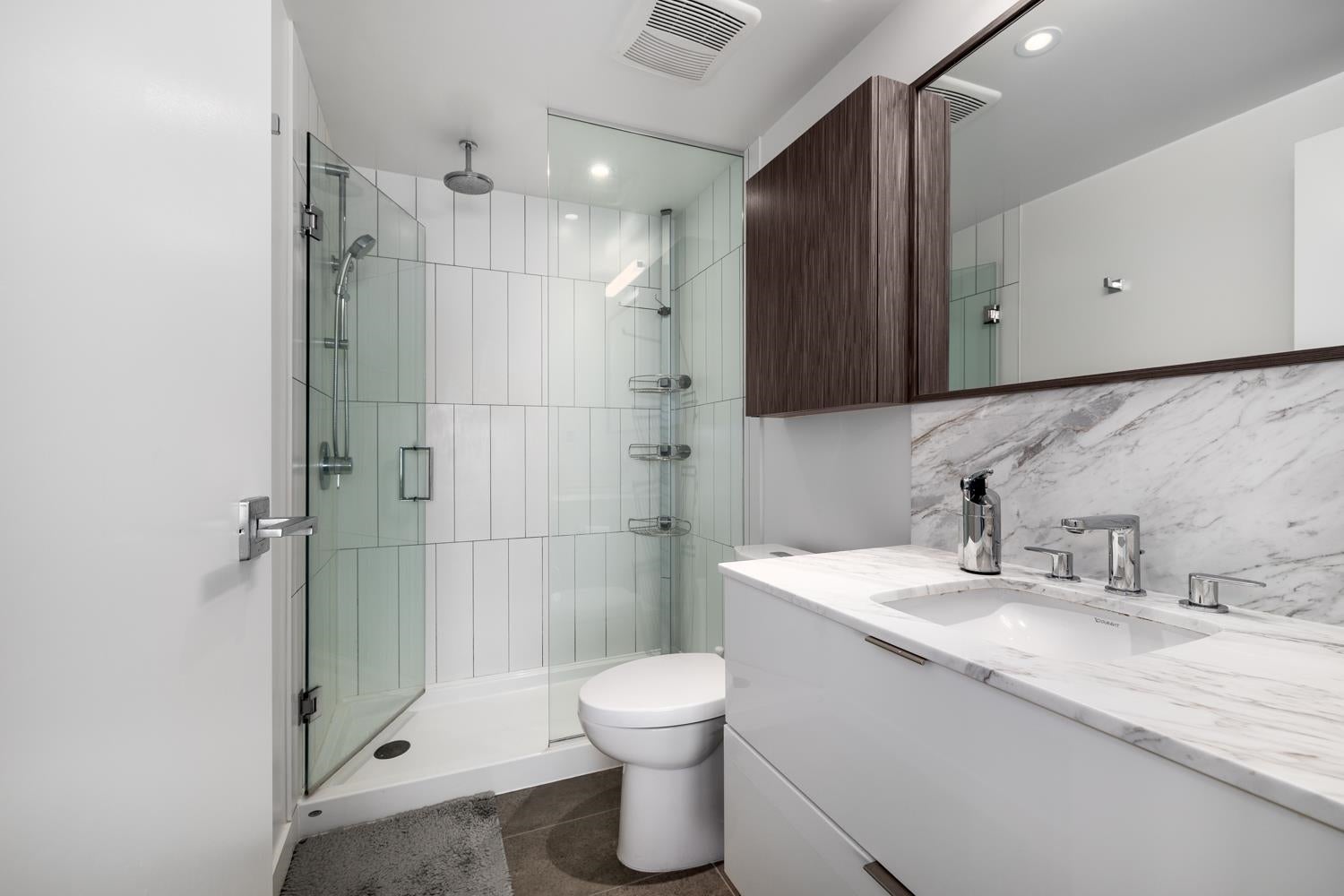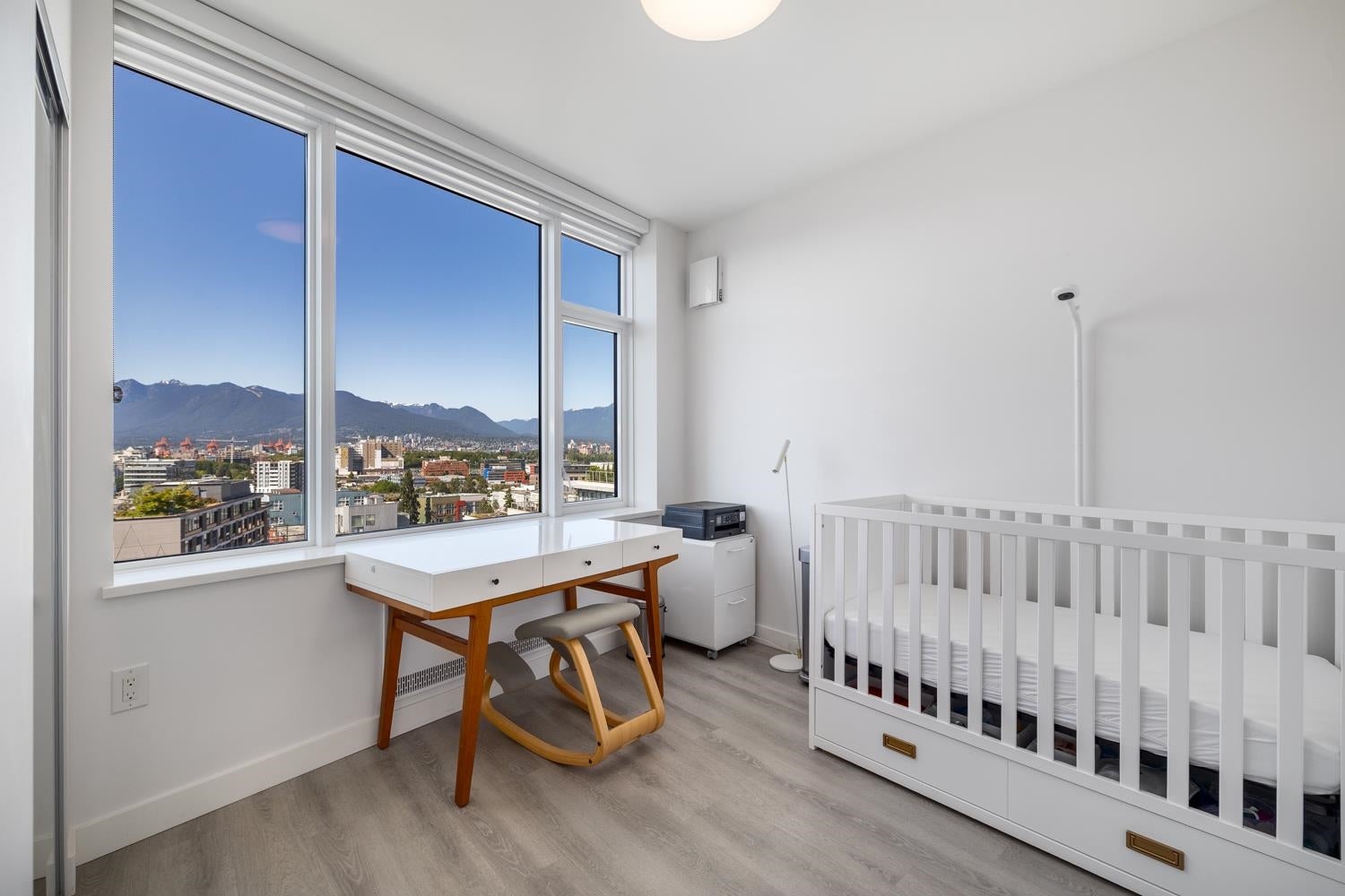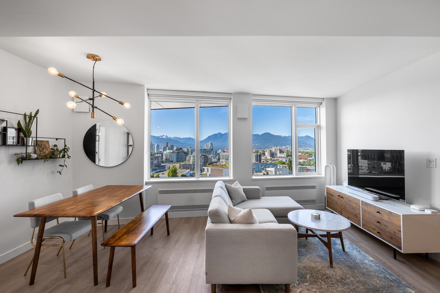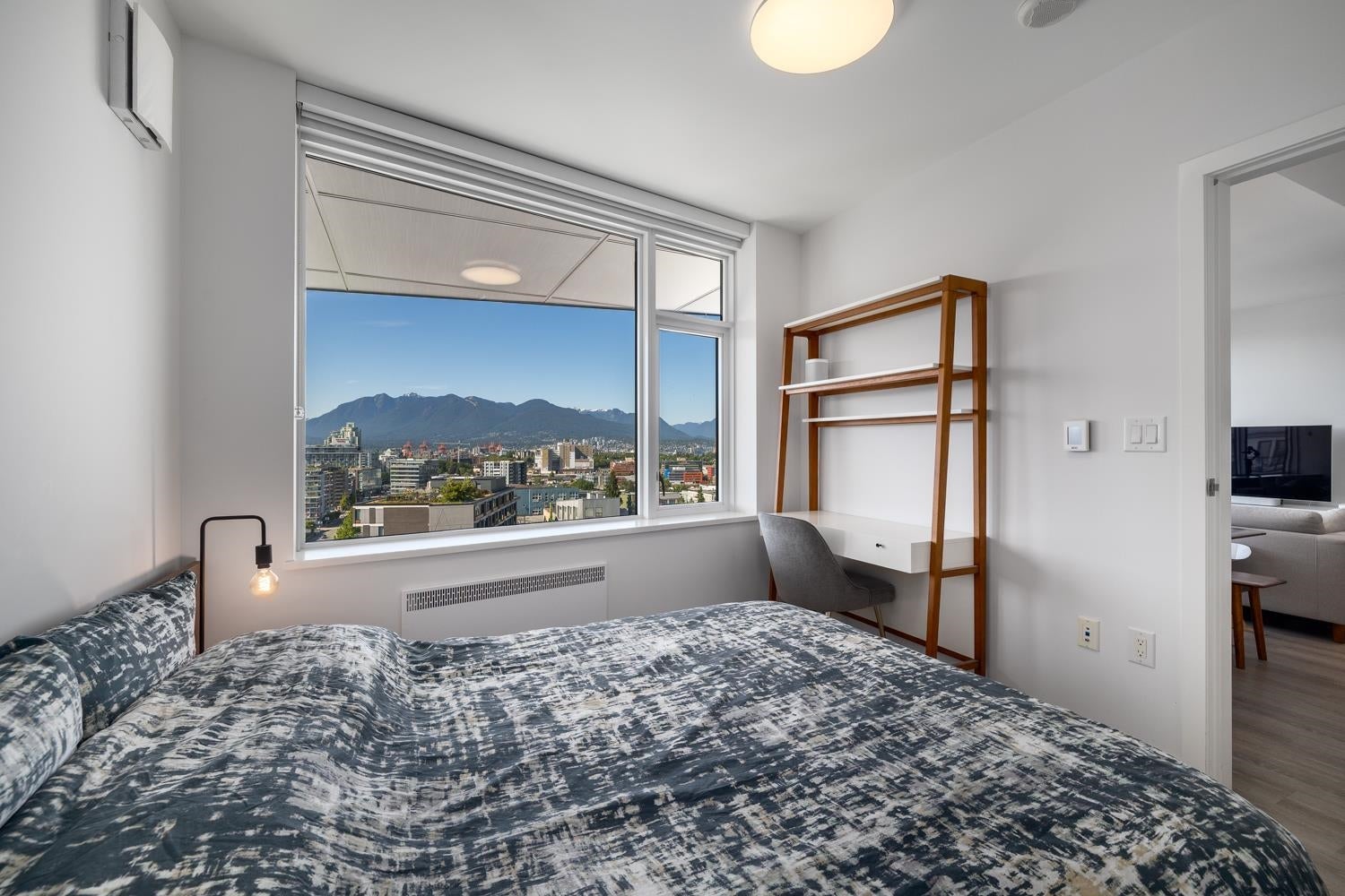 Spectacular views of the North Shore Mountains & City skyline from this beautiful Sub-Penthouse in vibrant Mt. Pleasant! Welcome to Ellsworth, a LEED certified concrete building just steps to Main St, this bright north-facing, open-concept 2 bedroom 2 bathroom+Flex/Pantry home with no wasted space boasts high-end finishings, a kitchen equipped with gas range & integrated Fisher Paykel appliances complimented by quartz countertops. Energy efficient hydronic heating & cooling system plus a Parking Stall & Bike Locker included in this pet & rental-friendly building. BONUS: Private 112 sq.ft. Storage Room. Impressive amenities include a common 3,500 sq.ft. Rooftop terrace with BBQs & fire table, concierge & lounge with pool table & kitchen.