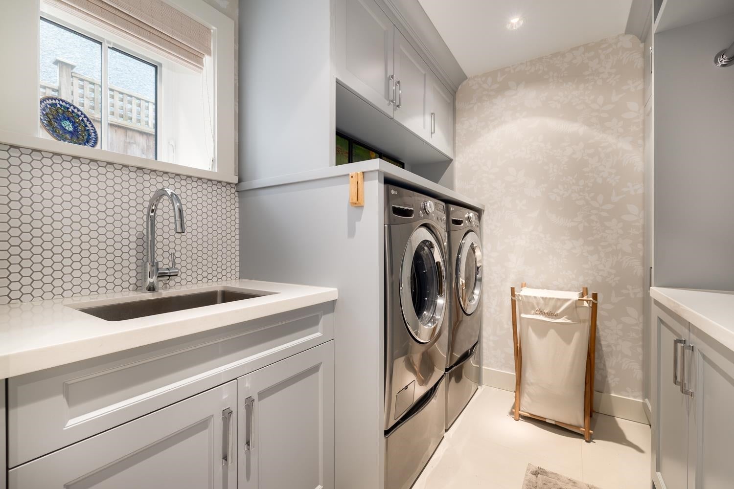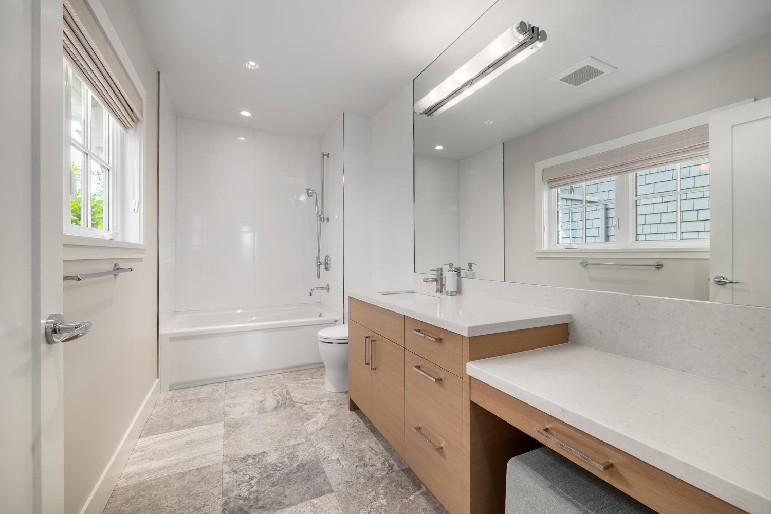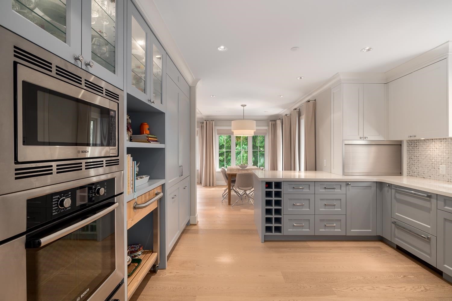 This exceptional residence showcases the sophisticated touch of Kelly Deck Design, nestled in the picturesque neighbourhood of Dunbar offering an inviting combination of luxury, comfort & contemporary elegance. This completely renovated home features 3 spacious bedrooms, 4 beautifully appointed bathrooms, Double garage for secure parking & Elevator for easy access between floors, Wide plank oak flooring with radiant heating, integrated Bosch appliances, Marble & Quartz countertops provide a seamless blend of style & durability. Designed to accommodate both entertaining guests & enjoying quiet moments. Expansive, dreamy windows wrap around the home, bathing each room in natural light & providing tranquil views of surrounding nature and manicured yard.